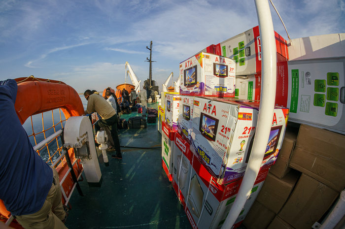 Вначале было заявлено, что надо быть у парома в 9 утра. Я приехал в порт, прошел все пограничные и таможенные формальности (заплатил официально какой-то сбор и отказал пограничнику, который попросил в подарок мои солнцезащитные очки) и пришел на причал.