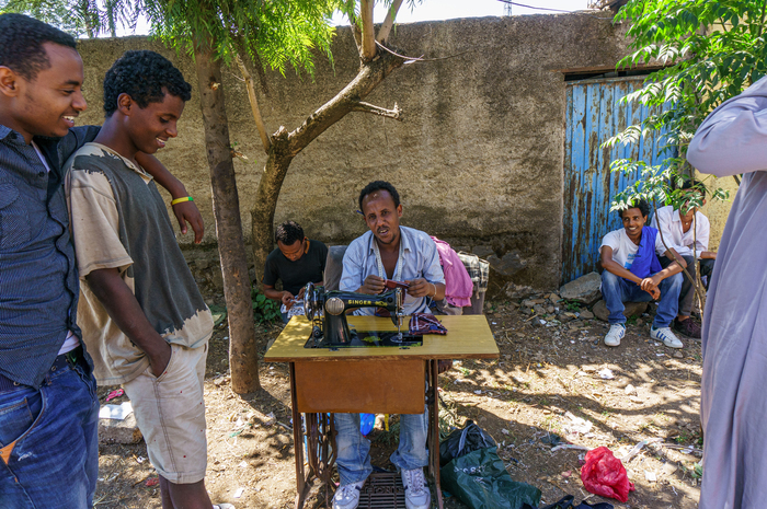 На улице можно заштопать или пошить одежду. Портной, как правило, мужчина. И центр притяжения округи