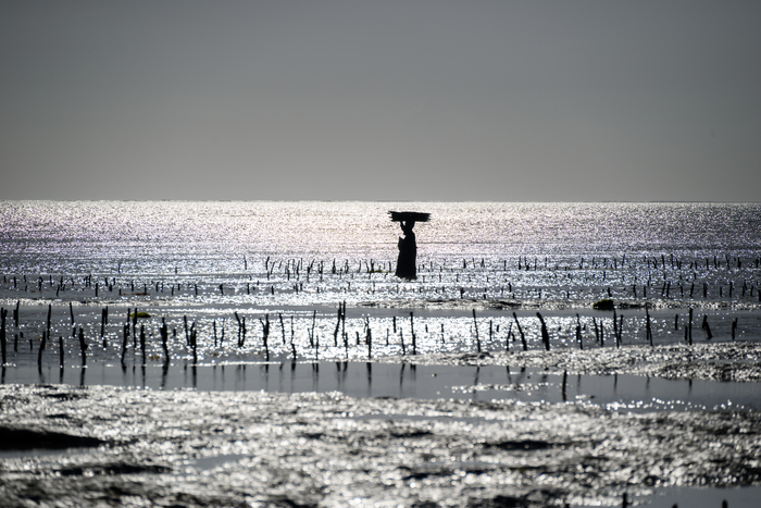 Начинается отлив. Мужики прыгают по лодкам и уезжают на рыбалку, женщины выходят за урожаем