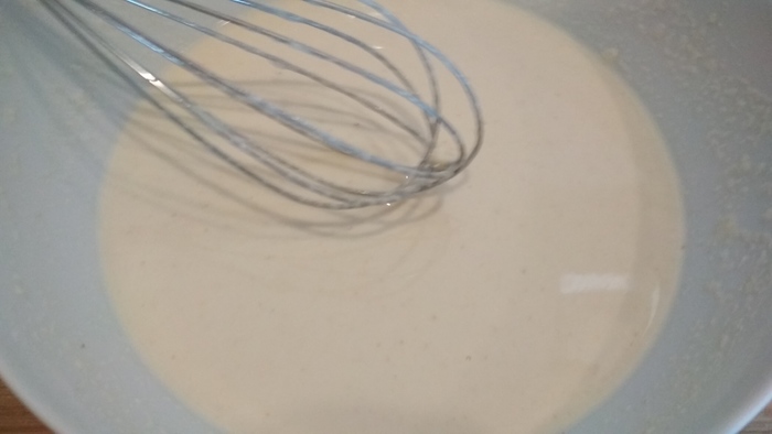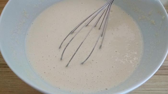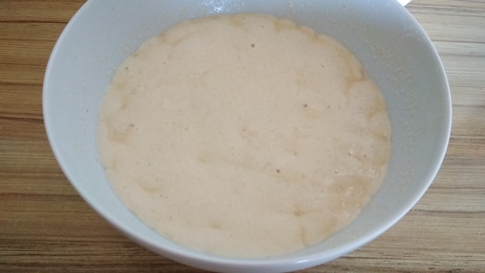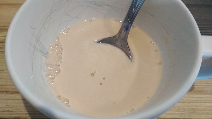 Столовую ложку муки разводим холодной водой, до состояния блинного теста.