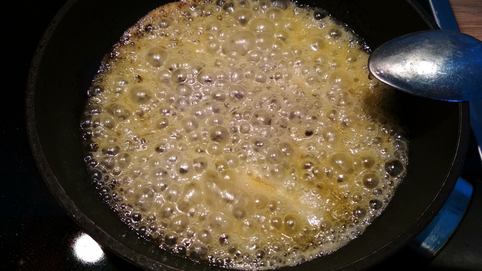 И финальным штрихом кладем в сковороду сливочное масло. Ну и наверное вы уже догадались - ПЕРЕМЕШИВАЕМ )))