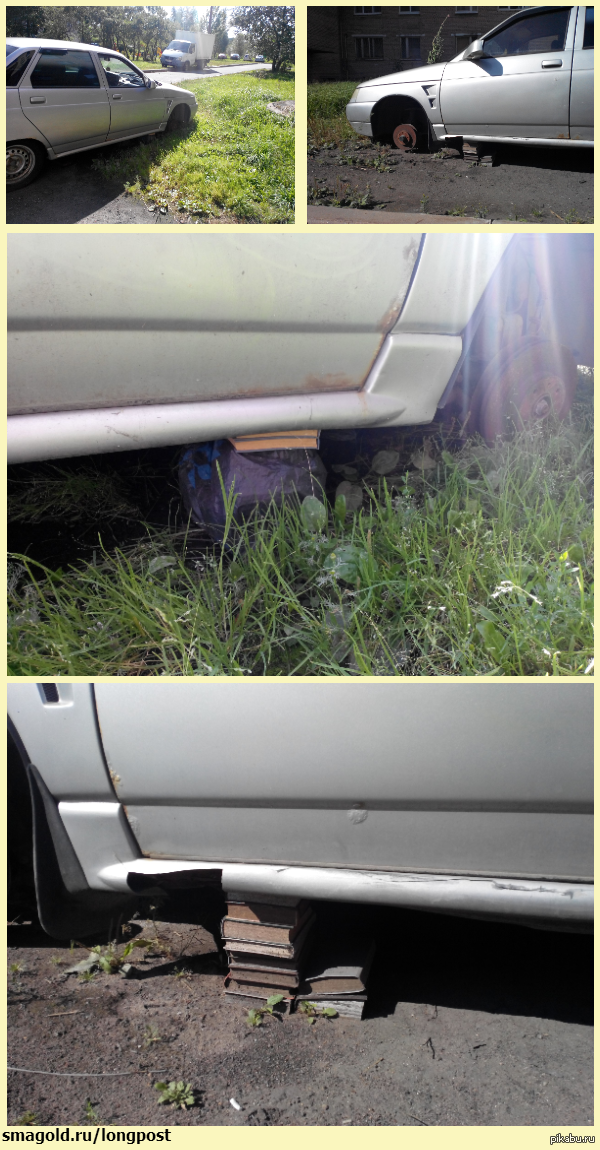 371 WalterWhile В Питере все настолько культурные 11 лет назад что даже, снимая колеса с машины, ставят ее не на кирпичи, а на книги Машина Сняли колеса Книги Санкт-Петербург