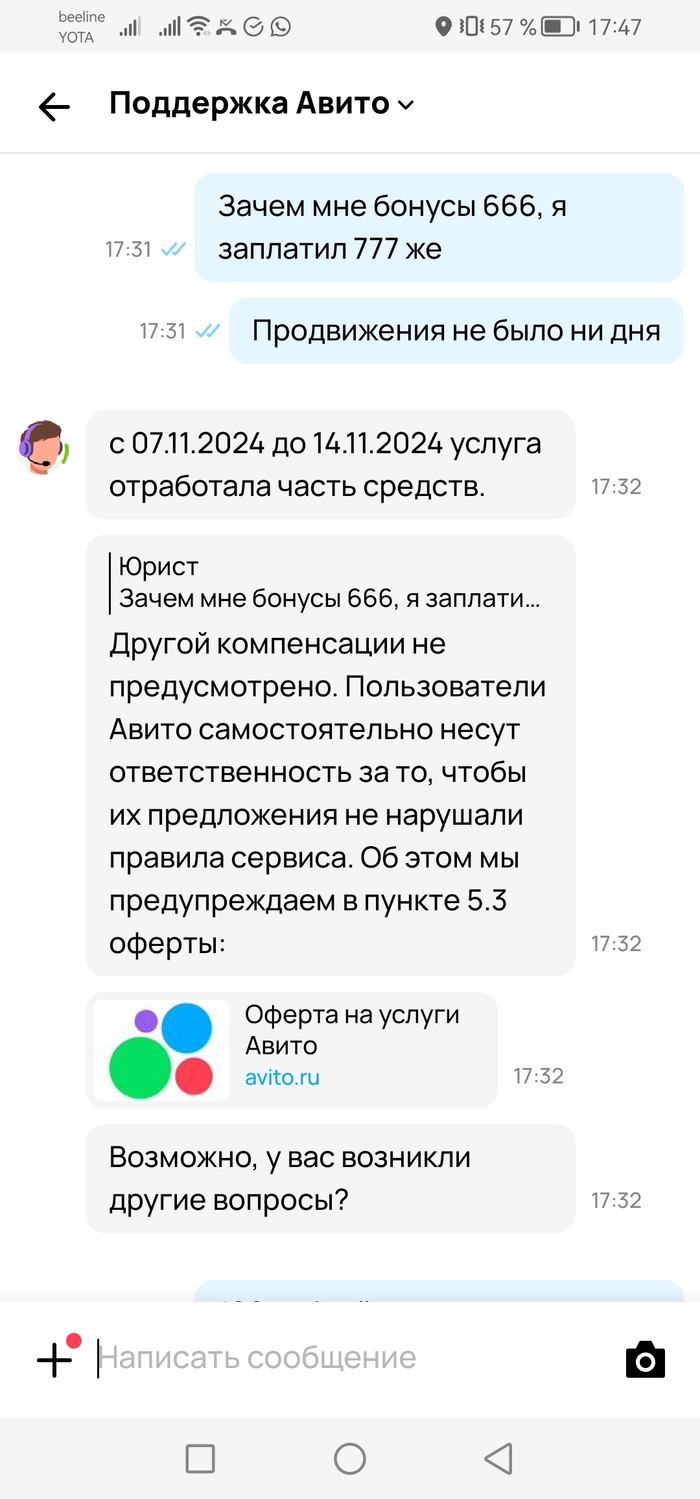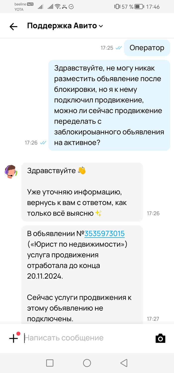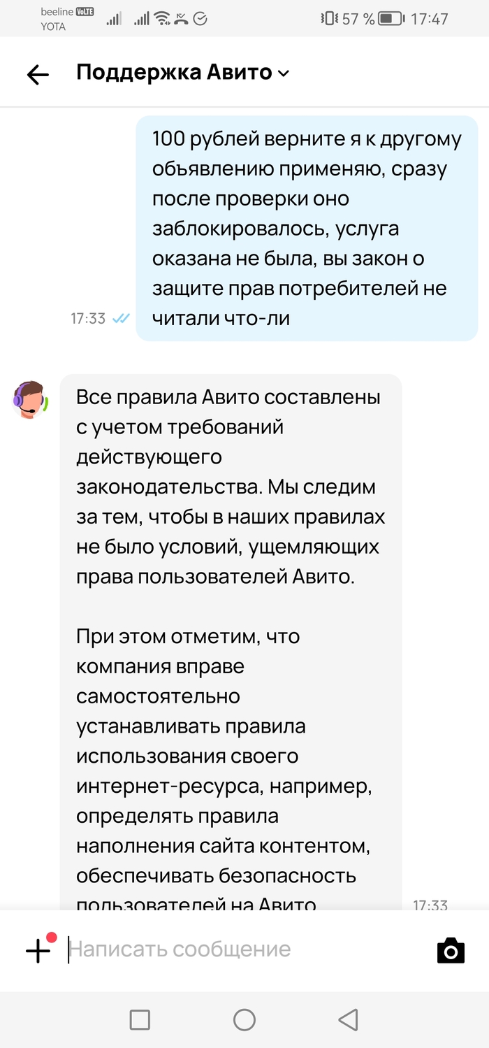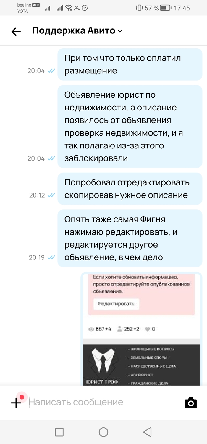 P.S.(3) Очень много людей которые честно работают на авито, либо просто покупают/продают свои вещи, и которых авито решило заблокировать без права на реабилитацию, я так полагаю что множно создать петицию, обратится коллективно в контролирующие ограны, в верховный суд РФ для создания практики (прецендента), чтобы была возможность использовать все функции авито, либо обратится совместно в авито чтобы была разработана возможность пользоватся авито в полной мере, авито уже не просто интернет ресурс по купле-продаже, аналога, либо конкурента авито нет в россии, авито зарабатывает на нас деньги, но при этом какого либо договора между нами нет, только оферта согласно котоой ониделают что хотят. Считаю неравнодушным нужно собратся, я уверен есть люди профессионалы, если соберется много людей в частифинансовых затрат для каждого это будет незначительно, но зато мы будет боротся за возможность честно заработать, мы не обкрадываем бабушек, не обнамывем никого по телефону, не совшаем даже морального нарушения, а просто хотим пользоватся тем чем по закону можем пользоватся, зарабатывать на этом, и платить налоги, либо просто продавать свои вещи. В ближайшие дни изучу возможность создать петицию, площадки на которых это возможно сделать, не равнодушным прошу откликнутся, люди которые в этом разбираются прошу присоединится и помочь, москва не сразу строилась давайте действовать!