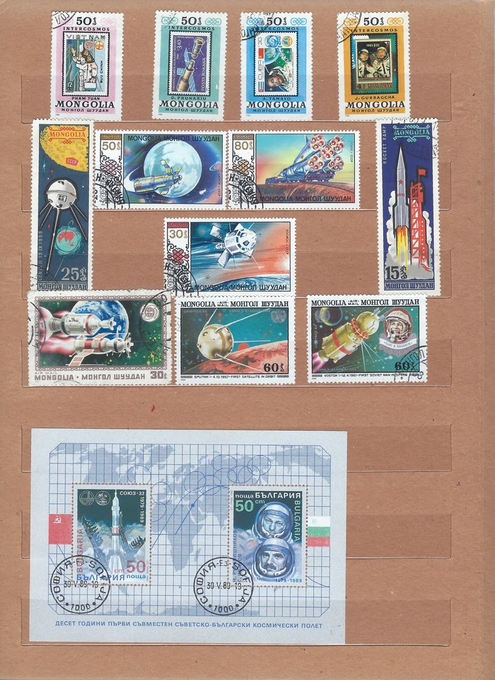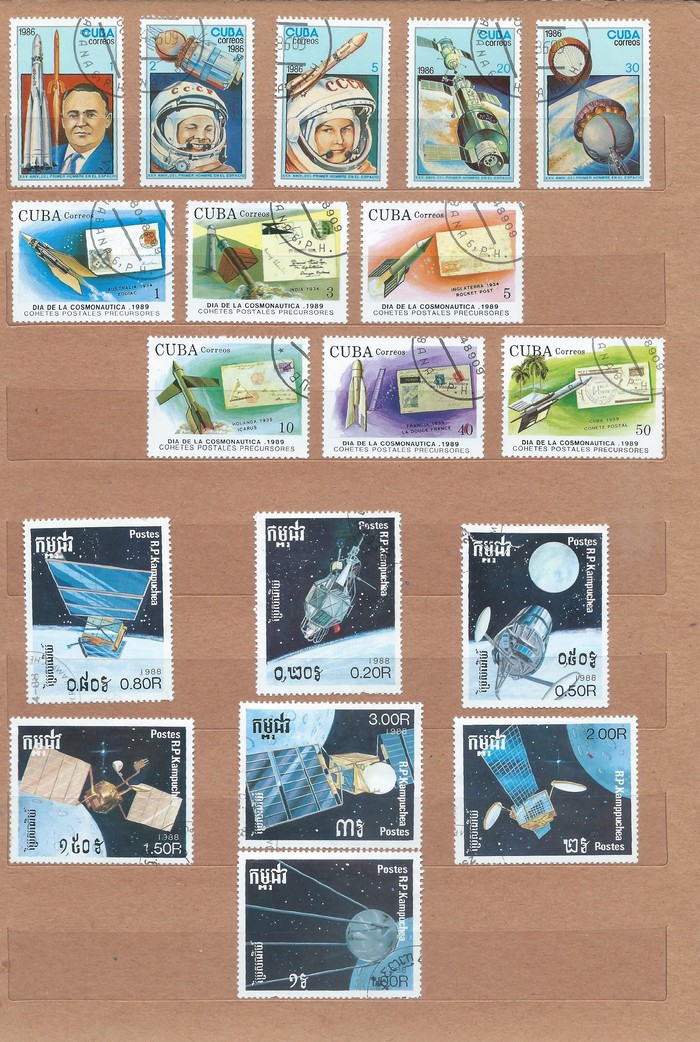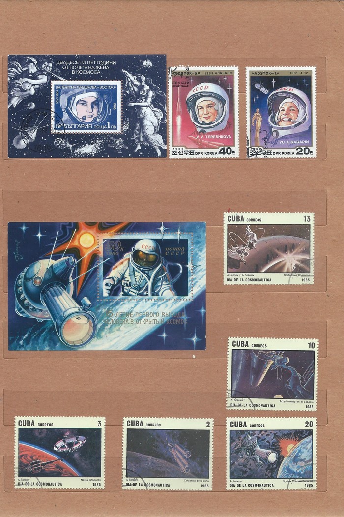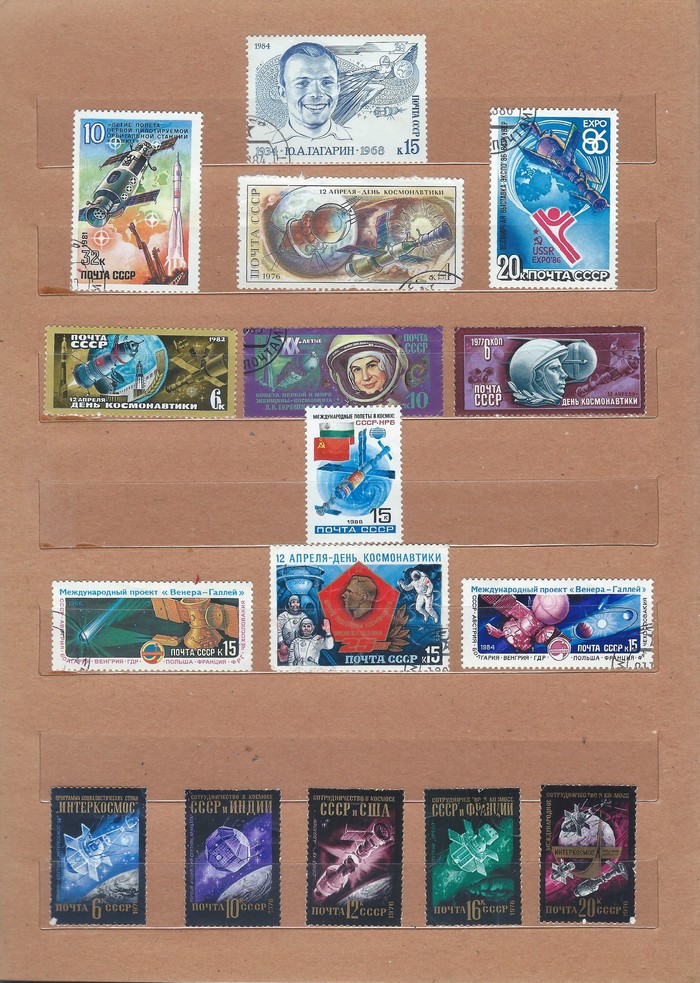 К сожалению, несмотря на детскую мечту, космонавтом я не стал и в космосе побывать не довелось. Но в старом шкафу до сих пор хранится небольшой альбом с марками на космическую тематику, которые появились у меня в детско-юношеском возрасте.