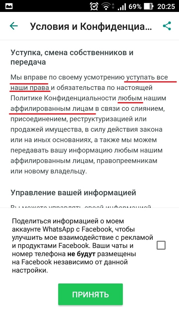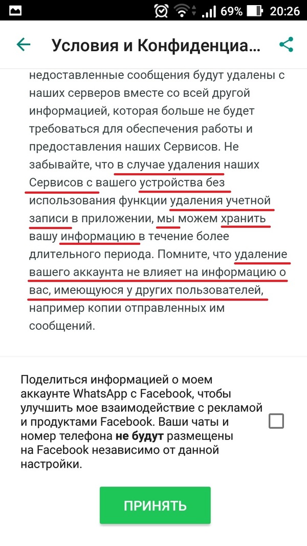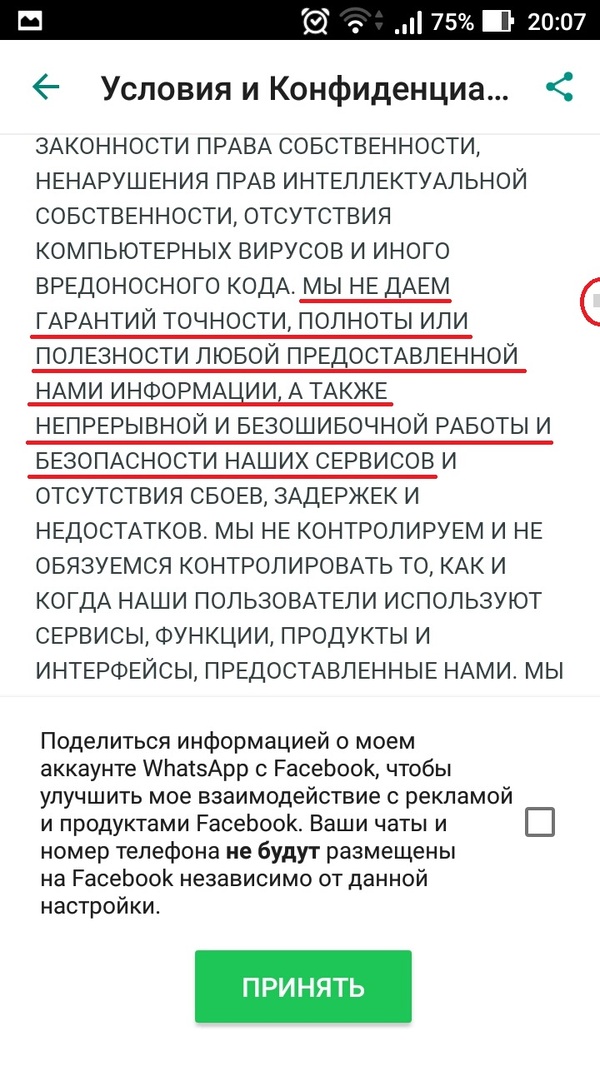 Ну что же. Это первая лицензия, которую я прочла почти полностью! С этим Ватсап можно поздравить. Но было там несколько ммм... Момэнтов, так сказать, которые вызывают если не вопросы, то нездоровый смех. После такого соглашения у меня жесткое ощущение грядущей казни через сну-сну от команды ватсапа, однако!