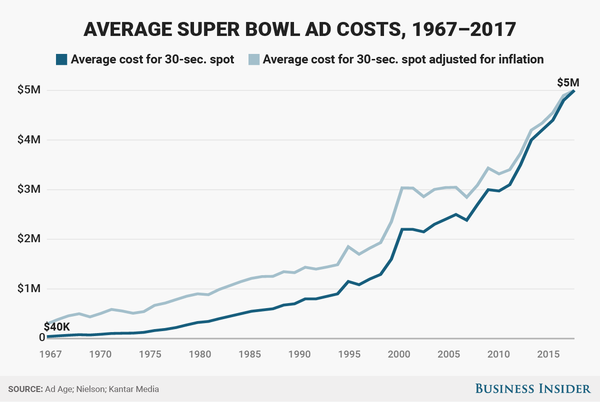 Телевизионная аудитория в США огромна. Трансляцию финала Super Bowl в текущем 2014 году посмотрело 111,5 миллионов телезрителей. А показ 30-секундного ролика во время эфира стоил 4 миллиона долларов.