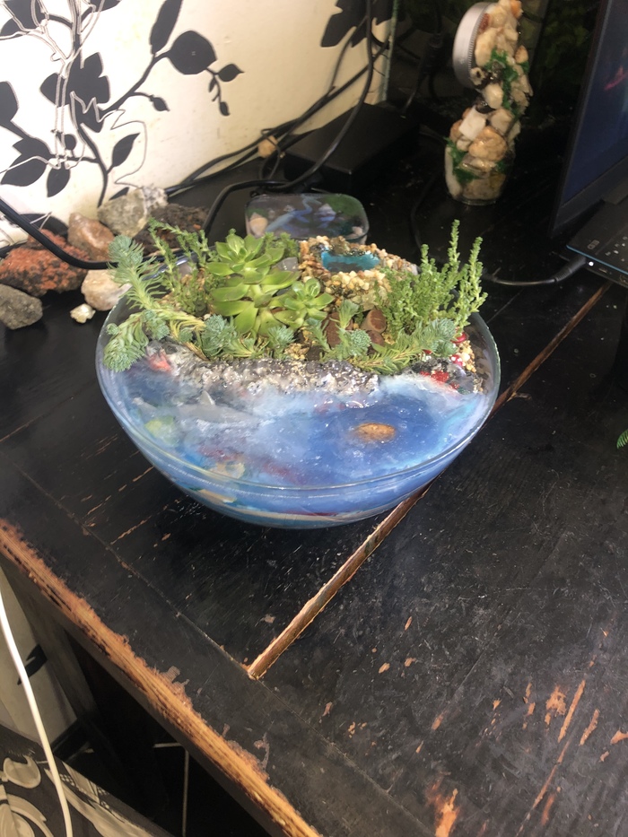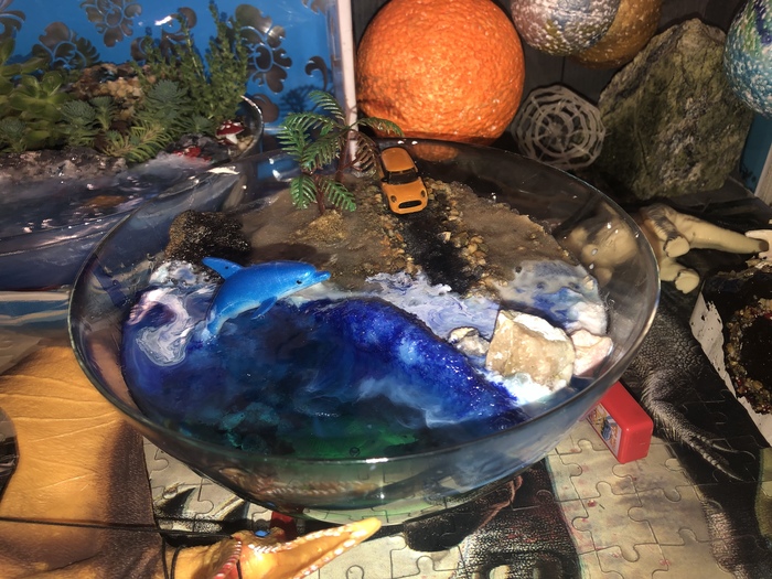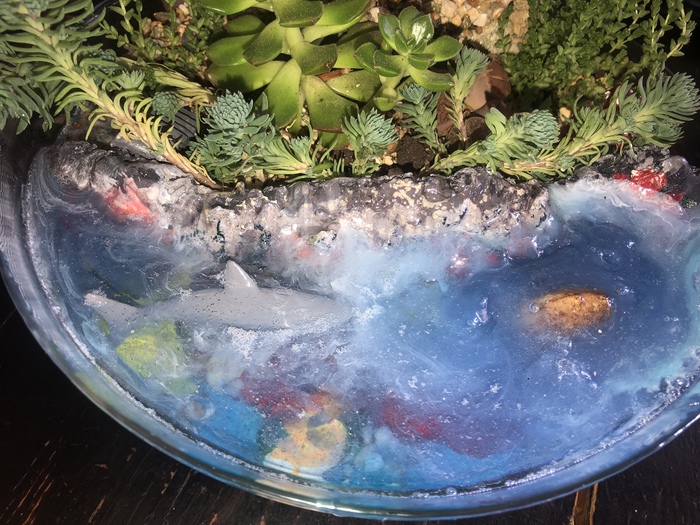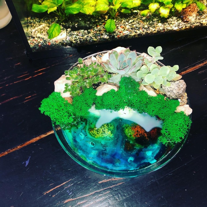 32 Whatgirl Флорариумы 4 года назад Осваиваю технику создания флорариумов с имитацией воды. Оцените пожалуйста работу, подскажите что нравится, а что не нравится. Показать полностью 12 [моё] Флорариум Творчество Длиннопост 1 Ещё 0