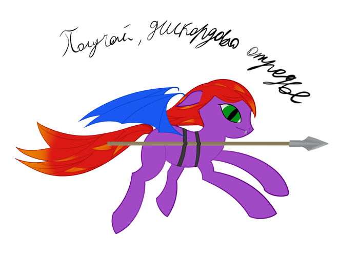 Голова, это, конечно, треш, когда-нибудь я научусь рисовать морды (нет). Но, в общем, вот такого плана мышь. Крепление копья - это отдельная история, которую я не смог придумать как нарисовать быстро, но мысли на этот счёт были, одних ремней, конечно, маловато, да и сползать будут. Потом я сделал этот скетч хуже, я его покрасил (хотя как выглядят крылья тут мне нравится больше, чем обычно выходит):