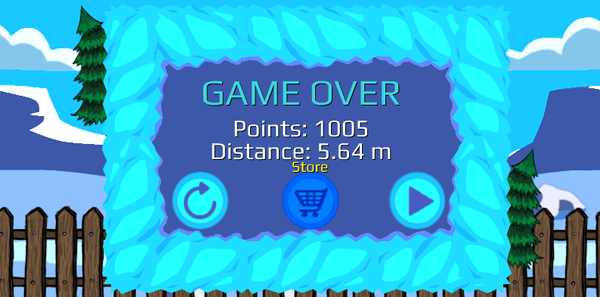 В игре нужно перепрыгивать злобных снеговиков, также присутствуют другие цели - расстояние, существует магазин с плюшками(жизни, тройной прыжок и т.д.).