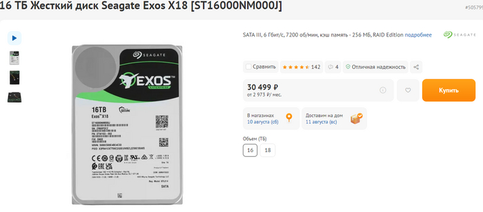 Погнали дальше. Для хранения со сном нам понадобится "всего" 247 таких дисков, или же 7533500 рублей.