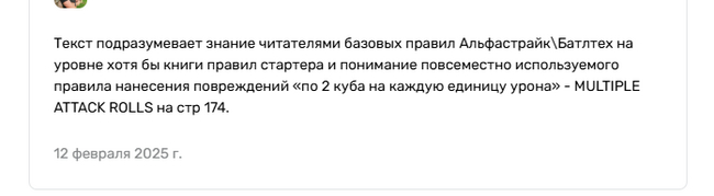 Так почему же я изначально так на него гневался? Во-первых - будем честны, не разобрался. Во-вторых - моя общая нелюбовь к турнирным правилам (травма с Вархаммера 9-ой редакции с их бесконечными эрратами и саплайментами) и скрежет зубовый от фразы "все так играют". К сожалению, с опытными игроками вряд ли получится сыграть по общим правилам, так как они, в массе своей, видят в обычной игре не больше, чем подготовку к следующему турниру, где они обкатывают новые стратегии, из за чего такому вечному новичку как мне нужно либо адаптироваться, либо играть с такими же вечными новичками. В-третьих - меня смутили сами статьи. По признанию самого @user7747457, статья изначально не писалась под новичков (да, это была одна статья, разделённая на три части), потому многое в ней опущено как само собой разумеющееся. Потому описание способностей написано с постоянной отсылкой к правилу Несколько Бросков на Попадание без постоянного напоминания об этом правиле. Потому у собравшихся там новичков, в том числе и у меня возникло так много вопросов.