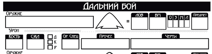 Это последний обязательный лист для немагических классов, который одновременно и абсолютно бесполезный, и совершенно необходимый. На первую половину зачастую забивают болт, а вот вторая... Дело в том, что помимо общих действий есть ещё и специальные, добавляемые с помощью Черт. Вот для их запоминания и существует этот лист. Ну и конечно же, этого листа может не хватить. Ну и последний лист, но не по важности, лист магии: