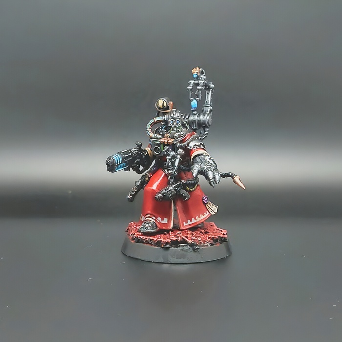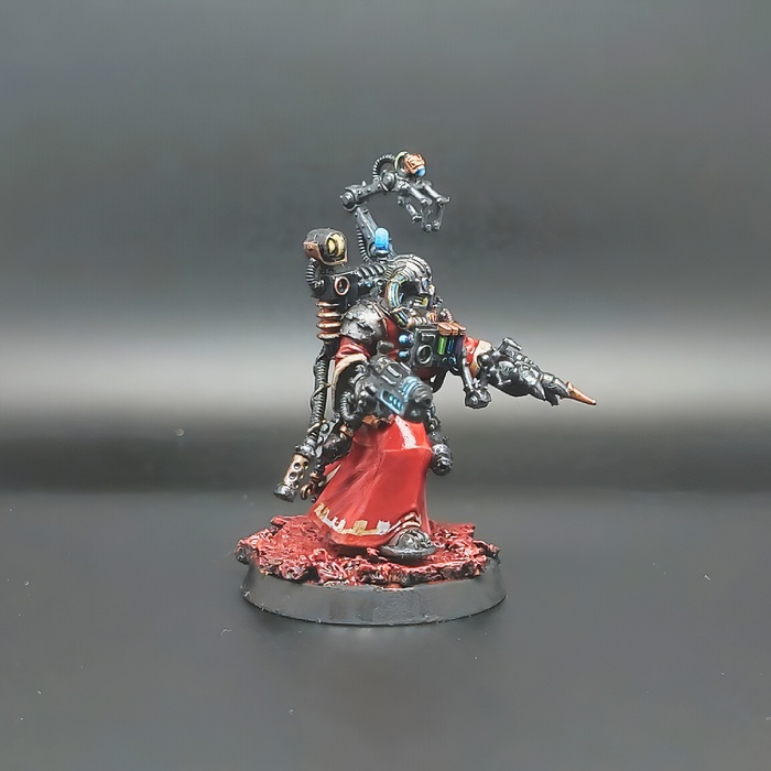 Ну и наконец тот, кто всеми ими управляет - техножрец кибернетик. И вот он у меня получился просто отлично. Особенно удачно получились синие светящиеся элементы. Ну и гигантское количество проводов, куда же без них. Уверен, что какой нибудь да и пропустил.