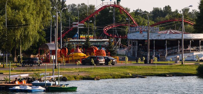 Здесь есть практически всё, что нужно для хорошего времяпрепровождения. Хочешь - гуляй, никто не помешает, территория достаточно большая и разнообразная. Здесь и река (в которой нельзя купаться, но люди всё равно купаются), в которой даже можно половить рыбу, здесь же большой лесной массив, в тени деревьев которого весьма приятно гулять, не жарясь на солнце и не страдая от ветра. При желании (скорее всего не вашем, а вашего ребёнка) можно посетить аттракционы, а если вы проголодаетесь, поблизости всегда есть кафе и рестораны. Конечно, цены там весьма недемократичные, но это лучше чем ничего.