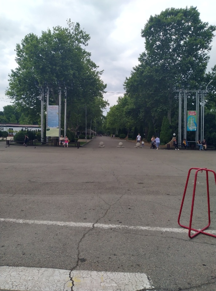 Но вашу мать, как же бесят эти огромные, ничем не прикрытые пространства, на которых вообще нет адекватной тени. Я вас может удивлю, но в таких местах жарко, а если светит солнце, то скажите "здравствуй" тепловому удару. А я может кого нибудь удивлю, но в Краснодаре солнце светит круглый год, либо идёт дождь. А я сильно сомневаюсь, что кто либо будет идти в парк во время дождя. Вторая серьезная проблема - элементарное отсутствие указателей, из-за чего найти ближайший туалет, кофейню или активность практически нереально. Нет, я не сомневаюсь, что и туалеты и кофейни и активности где то да и есть, даже указатели где что находится, правда я их не нашел, а кофейню нашел исключительно по летнику, из которой я сейчас всё это и пишу, но вашу мать, я здесь в первый раз, можно меня хотя бы пробовать направить? Ах,да - ветер. Постоянный ветер из за огромных расстояний. Дорожки действительно огромны, как и расстояния между активностями, на которых, на минутку, ничего не происходит, по крайней мере пока я был здесь. Не спорю, если будет гулять какая либо парочка, без детей и кого либо ещё, то парк вцелом неплох. Но вот поход с детьми - это настоящий ад, ибо детям здесь сначала станет плохо, потом скучно и они вытрепят вам все нервы, при том, что вам тоже плохо из за жары и гребаного солнечного удара. А уж какая там остановка! Правда, в здравом уме вы не поймёте. что это остановка. Ни указателей, ни скамеек. Зачем?