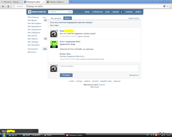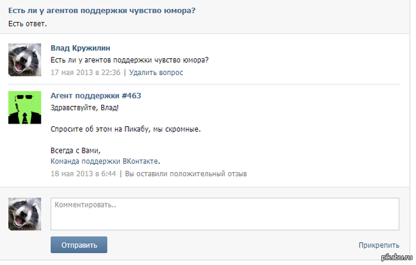 1098 Wolfiko 11 лет назад Скромная техподдержка Меньше года назад спросил... [моё] ВКонтакте Техподдержка вк