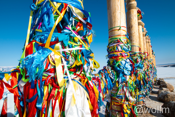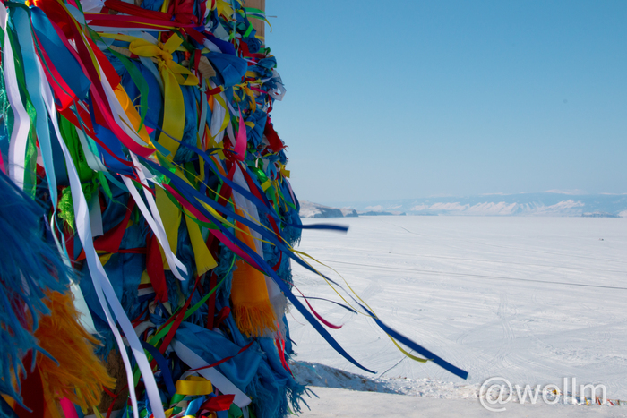 Шаманские столбы с красочными лентами добавляли разнообразия красок в белый пейзаж, а солнышко тоже радовало, хоть и слабо грело.