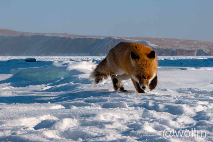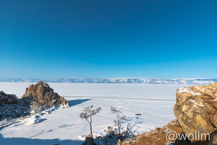 К сожалению в этом году знаменитого "байкальского чистого льда" в окрестностях Ольхона почти не было, местные жаловались, что ветра было мало и снег просто не сдуло, а теперь уже всё... пришлось созерцать снежную пустыню.
