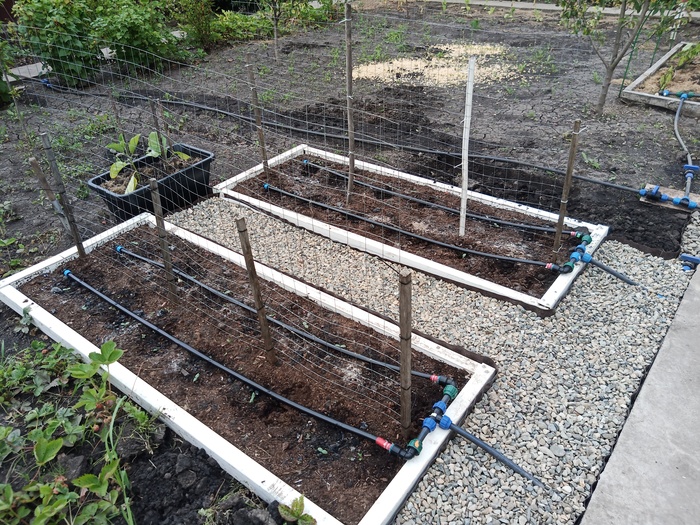 На этом с баком все. Переходим к теплице и грядкам.