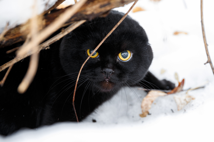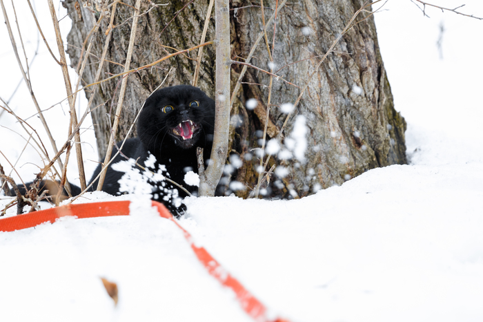 Но в процессе выкладывания фотографий и написания слезливого поста, я подумал, что эта черная бестия ночь точно не протянет на холоде. Тогда то и пошел снова искать черную бестию в темноте, благо что моего динозавра увезли в деревню и можно было смело затащить кошку домой. Повезло что этот монстр так и сидел все в том же месте, где я его и оставил во время прогулки с собакой.