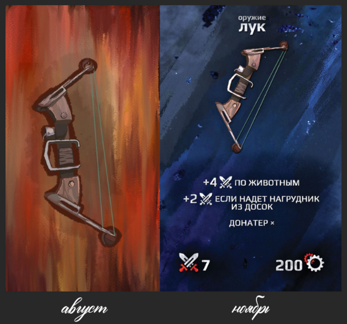 Тем не менее, было решено полностью перерисовывать все арты, менять некоторые концепции и механики, и, само собой, не использовать никакую символику и не выдавать наш продукт за чей-то другой. Так и появилась игра "Раст на раст не приходится"...