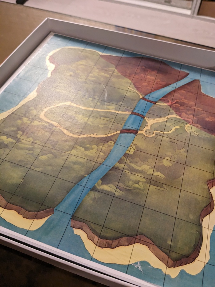 Следующий наш прототип поля был уже цветным. "Черная зона" превратилась в выжженные земли. Остров по-прежнему был совершенно пуст, и его все также делила пополам длинная река.