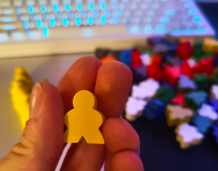 Фигурки игроков, понятное дело, также берём деревянные, т.к. пластмасса — это cringe. К счастью, Каркассон наводнил рынок разными видами "миплов" так что найти поставщика таких фигурок сейчас не проблема.