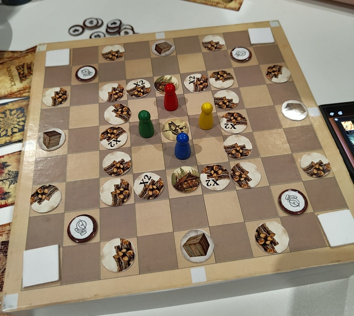 Первым делом в игре появились наброски поля, карт и жетонов с ресурсами.