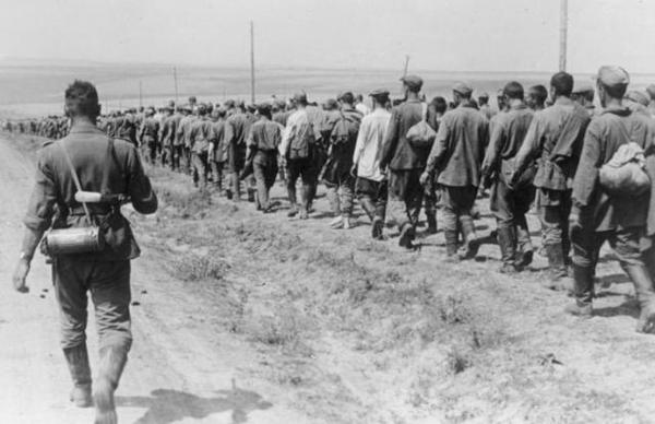 Колонны пленных красноармейцев