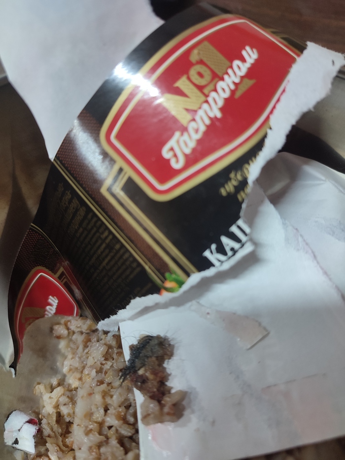 Решил сегодня попробовать кашу из консервной банки. Сначала думал, что погрею прямо в банке на газовой горелке, потому и сорвал этикетку, но впоследствии решил, что лучше будет выволить все в миску. В процессе обнаружил клок шерсти. Как то совсем аппетит пропал)