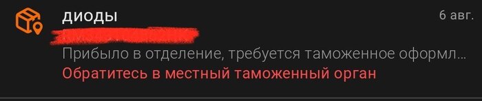 Спустя пару недель в почте России отобразилось сообщение, что посылка прибыла в отделение, но для получения мне нужно обратиться в местный таможенный орган.