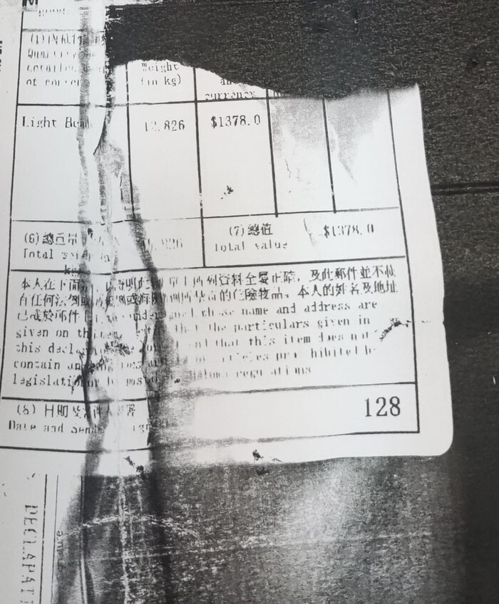 С горем пополам выяснив, по какому адресу мне обратиться, пришел на таможенный пост Главпочтампа. Высидел очередь в пару часов, подошел к окошку, попросил выдать мою посылку. А мне из окошка показали хер с маслом ксерокопию посылки(!), где кое-как можно было рассмотреть стоимость, указанную на наклейке с информацией. Там значится 1378 у.е.