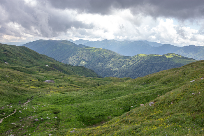 Тропа пересекает плато Лагонаки и идет в обход горы Оштен, которую можно обойти и по северную сторону, через озеро Псенодах. Насколько знаю, эти маршруты описаны на сайте Кавказского заповедника, где мы перед походом брали пропуска на посещение.