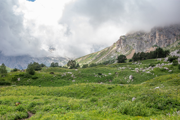 Сам маршрут этого дня проходит через Инструкторское окно, перевал Гузерипльский и перевал Армянский. Набор высоты небольшой, а основной перепад это спуск к стоянке Фишт, идти и наслаждаться красотами можно в течение всего перехода.
