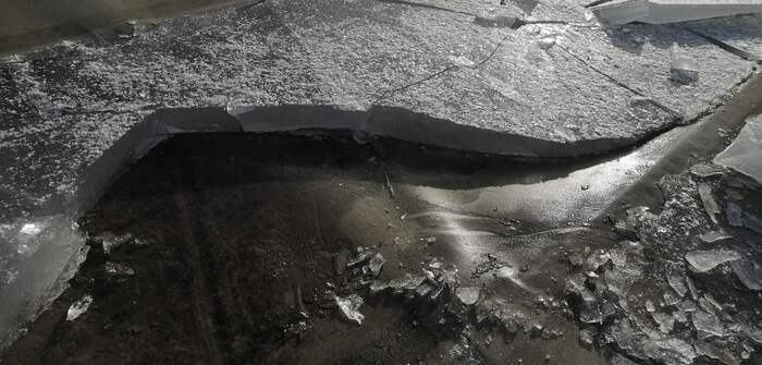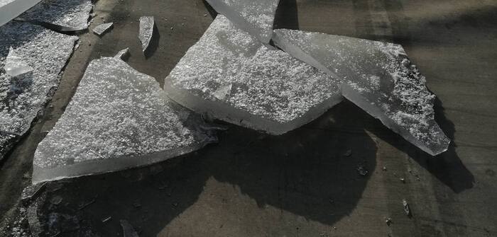 В завершении хочу напомнить коллегам о необходимости скидывания льда с крыши крытых полуприцепов. Обратите внимание какой слой за день снега, двух дней оттепели и заморозков.