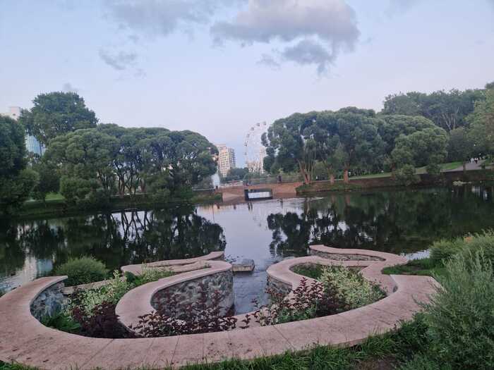 Рядом с гостиницей располагается замечательный парк в котором проходило тестирование нового фонтана. Всё шоу не было показано, но уже стало ясно что будет нечто грандиозное.