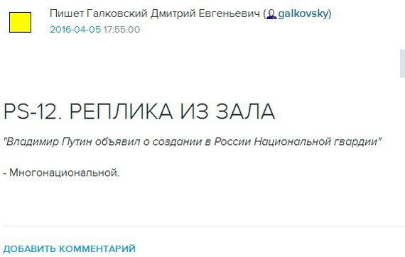 Повернуть эту новость по-другому не получится при всём желании (хотя Александр Гельевич Дугин, например, уже опубликовал ролик под названием «Национальная гвардия как русская идея», ждём Захара Прилепина).