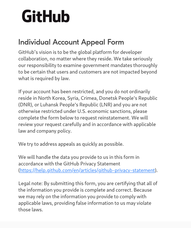 Мы серьезно относимся к нашей ответственности по тщательному изучению правительственных распоряжений, чтобы быть уверенными, что пользователи и клиенты не будут затронуты сверх того, что требуется по закону.Если ваша учетная запись была ограничена, и вы обычно не проживаете в Северной Корее, Сирии, Крыму, Донецкой Народной Республике (ДНР) или Луганской Народной Республике (ЛНР) и вы не подпадаете под действие экономических санкций США, пожалуйста, заполните форму ниже, чтобы запросить восстановление. Мы внимательно рассмотрим ваш запрос в соответствии с действующим законодательством и политикой компании.