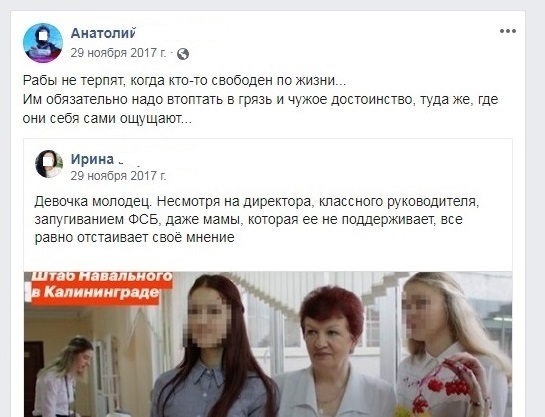 Очень удобные двойные стандарты у "несистемных оппозиционеров". Боже упаси перестать быть для них удобным. Кстати, ни у кого со стороны ответчика не возникло сомнения в правильности происходящего, - тетка, желающая резать "оккупантов" для них - жертва, принципиальная молодая мать, всего лишь отстаивающая свое гражданское право, в данном случае была врагом, которого надо любой ценой задавить, а видеоролик пятилетней давности с двумя лайками – ценность, которую необходимо отвоевать.