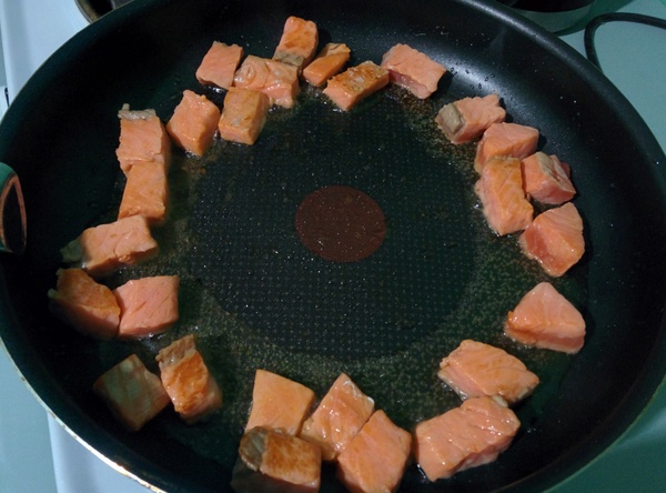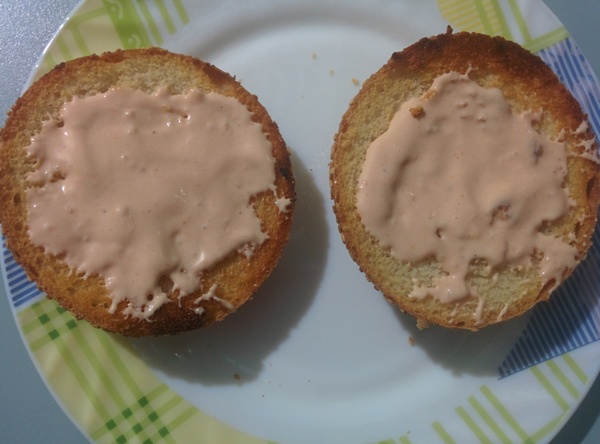 Срезы булочки обжариваем на сухой сковородке около минуты.