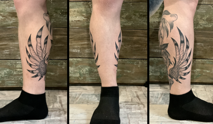 Привет! пришел ко мне как-то клиент с трайблом на плече, хотел продолжить рукав. я сама трайблами не увлекаюсь, не в стилистике это моей работы, поэтому предложила такой вариант: наскальная живопись, которая в древности своей не уступает трайблам, и как оказалось, прекрасно может его дополнить!