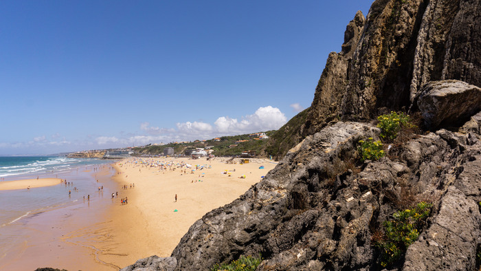 Пляж Прайя-Гранде находится рядом с Лиссабоном. Прайя-Гранде один из самых известных серфовых спотов в Европе, центр притяжения любителей водного спорта всего мира. Пляж протянулся на семьсот сорок метров по атлантическому побережью Португалии. На его территории расположено множество баров и ресторанов. С севера пляж ограничен огромным открытым бассейном и комфортабельным отелем.