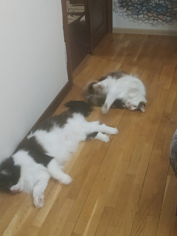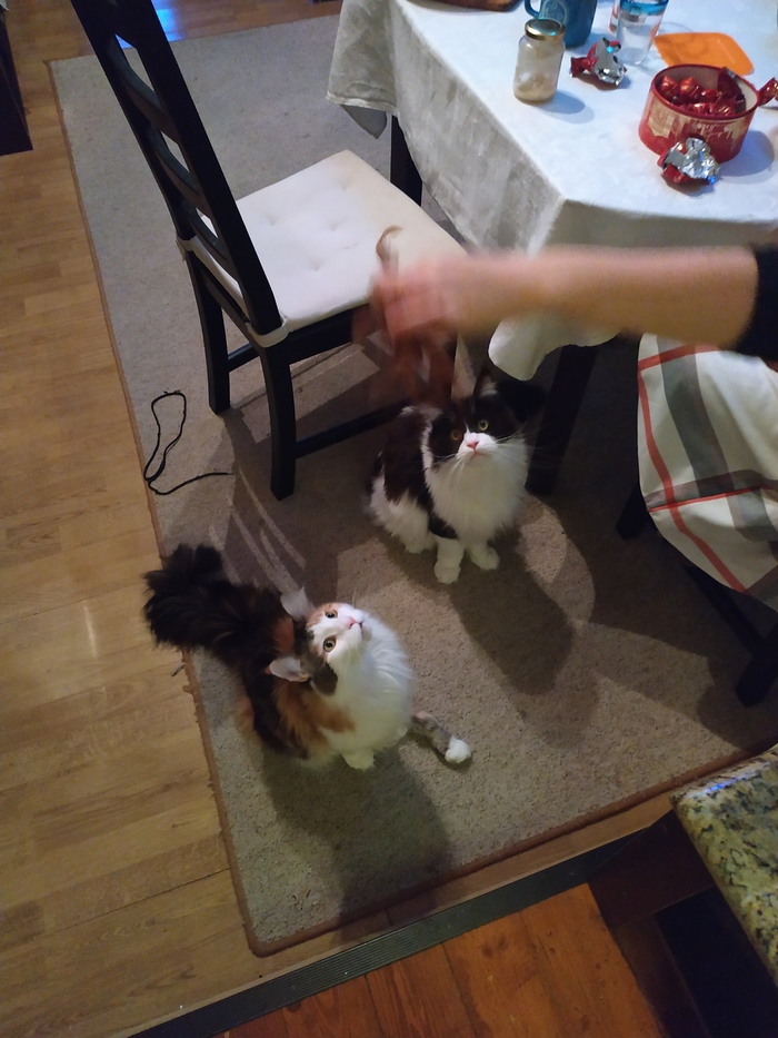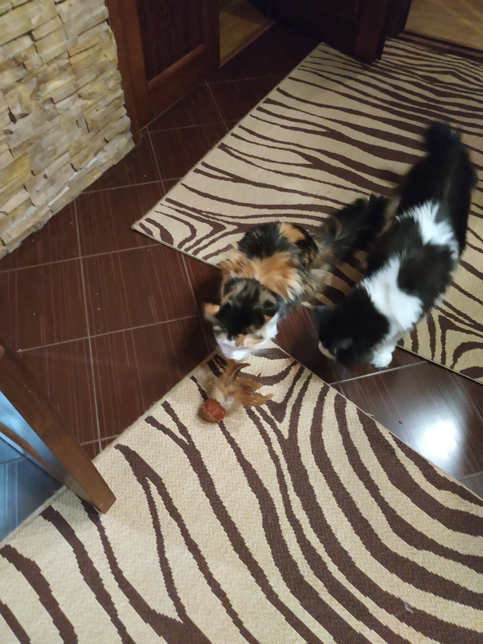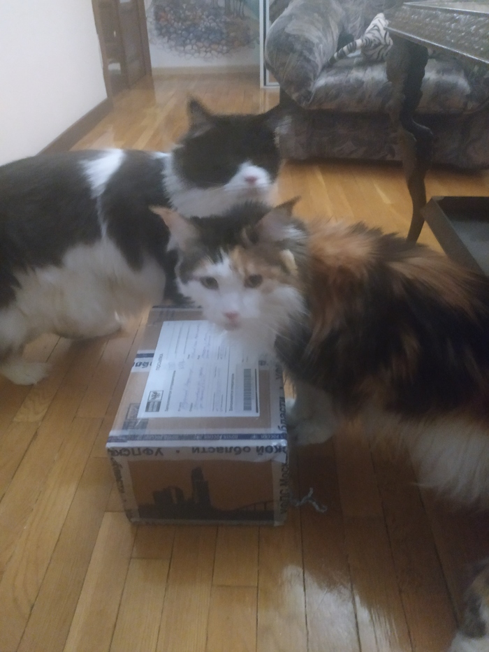 Котики... Поначалу они даже немного дрались за свой подарок, но давольно быстро решили пользоваться им по очереди. Пару минут и...Короче, котики сломались.
