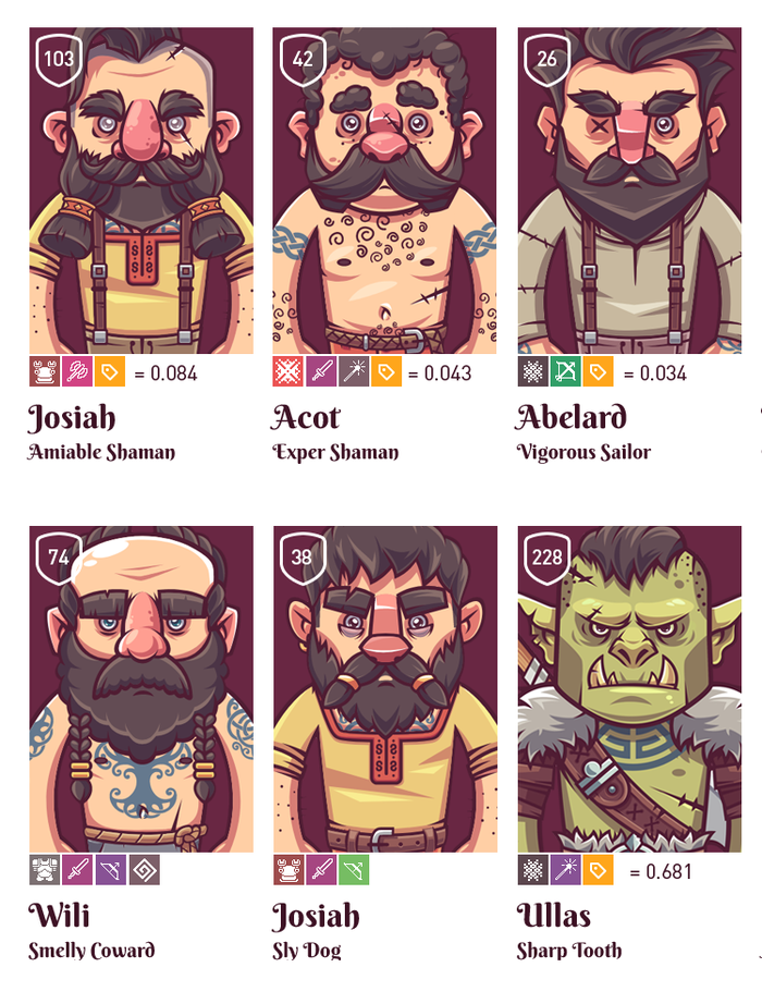Каждый герой состоит из 11 элементов с 256 возможными вариантами. Это позволяет генерировать действительно уникальный внешний вид для каждого персонажа.