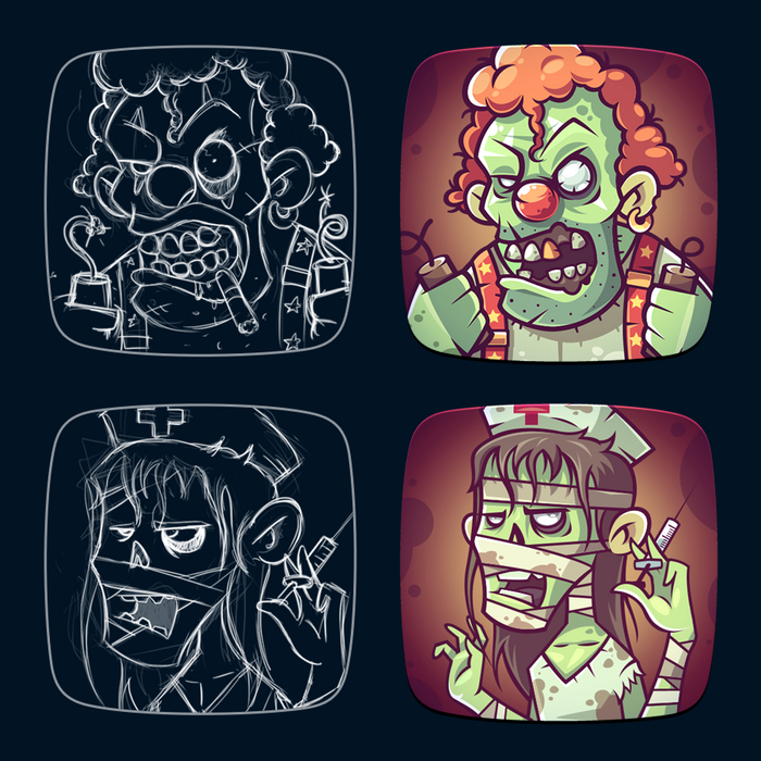 Практически сразу стало понятно, что работы будет в два раза больше (оказалось в четыре как минимум). Для каждого персонажа нужна была зомби версия