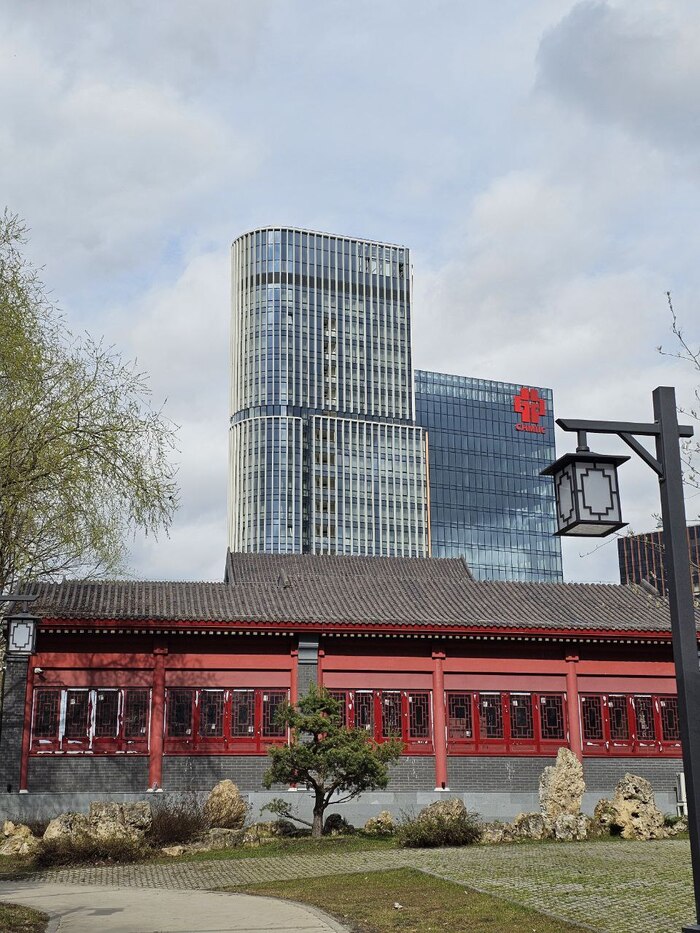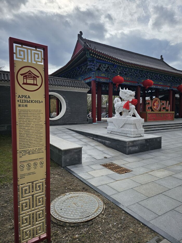 Первое, что бросается в глаза на подходе к парку – это «китайскость» обстановки вокруг. Как уже сказано выше: там есть отель и торговый центр и их архитектура прям кричит: «Я – есть Китай!», – у обоих зданий максимально затерт из восприятия 4 этаж.