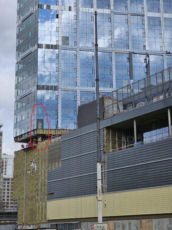 Как видно по фото: технический этаж торгового центра имеет номер 4 (скорее всего будет даже убран из нумерации в лифте), а у отеля 3 этаж заняли конференц-залы, которые выше, чем обычный этаж, таким образом 4 этаж куда-то испарился.