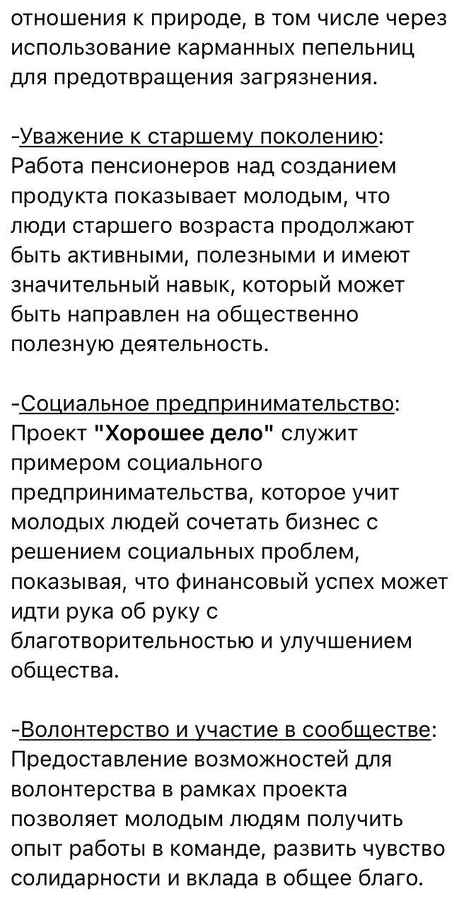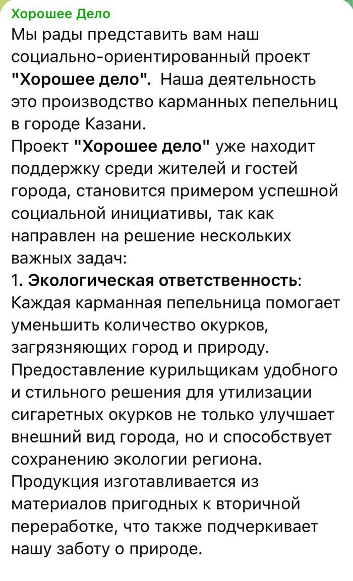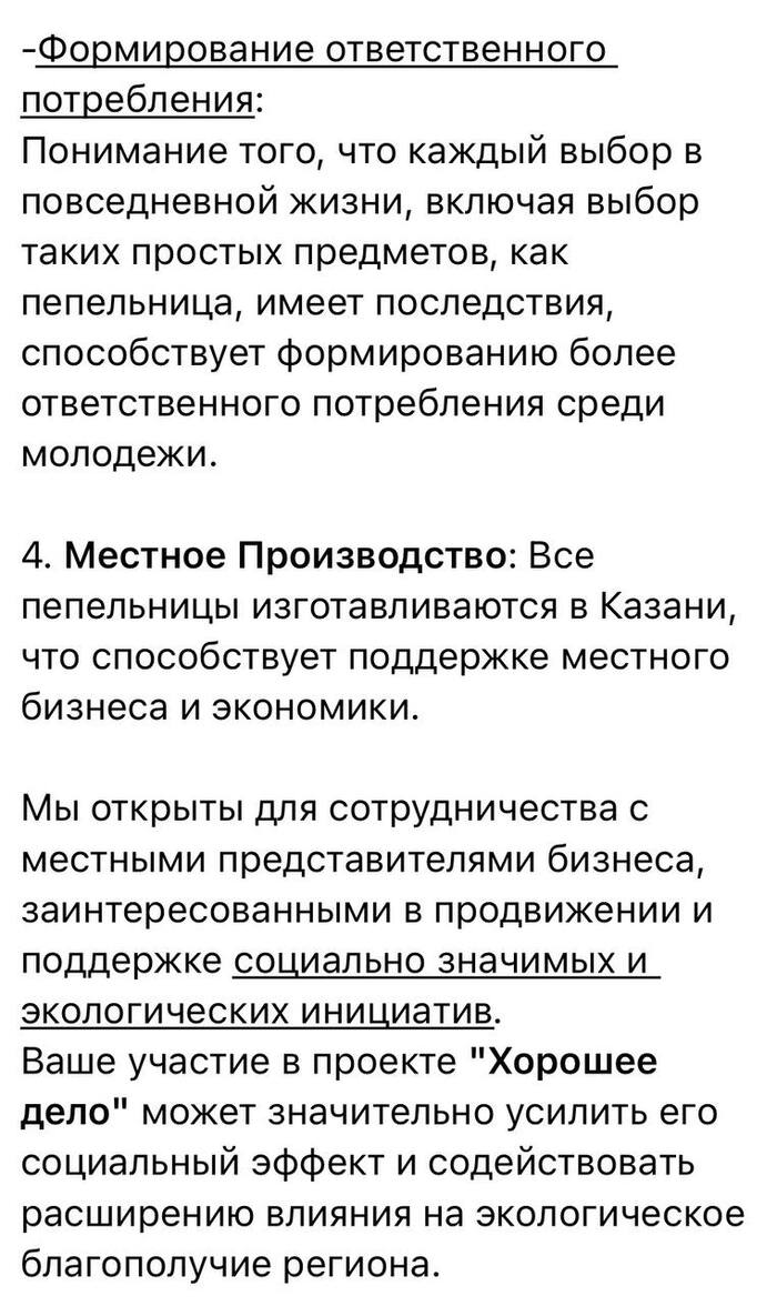 И самое главное — это изменение социальных норм. До сих пор сигаретный окурок — это последний вид мусора, который допустимо выбрасывать на землю. Социальные нормы во многом влияют на наше поведение. Экологическое просвещение и изменение общественных установок — это важная составляющая в борьбе за чистоту нашей планеты, даже в таком маленьком вопросе, как сигаретный окурок.