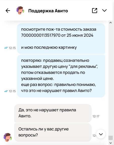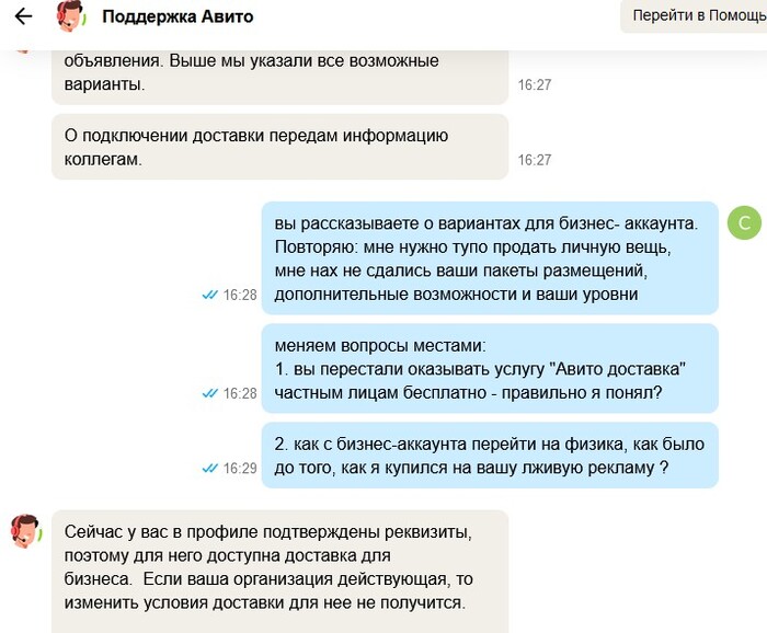 Спрашиваю Тупую Поддержку Авито, как обычно - несколько часов меня мурыжили роботы (отвечают совсем мимо), а потом диалог приходит к развязке: