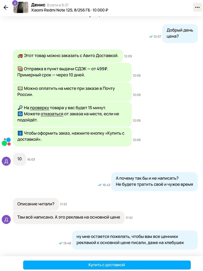 Кроме того, Авито всячески вмешивалось в диалог между мной и исполнителем, присылая вот такую хню: